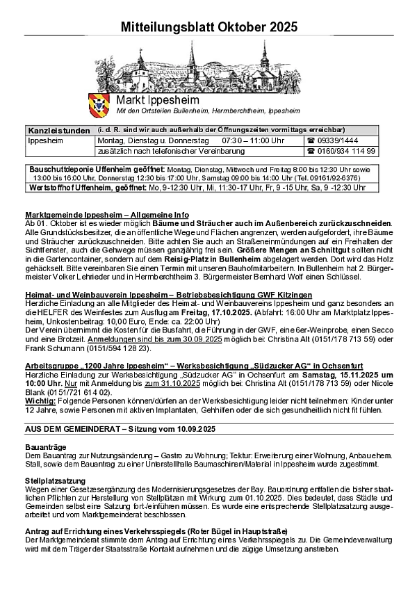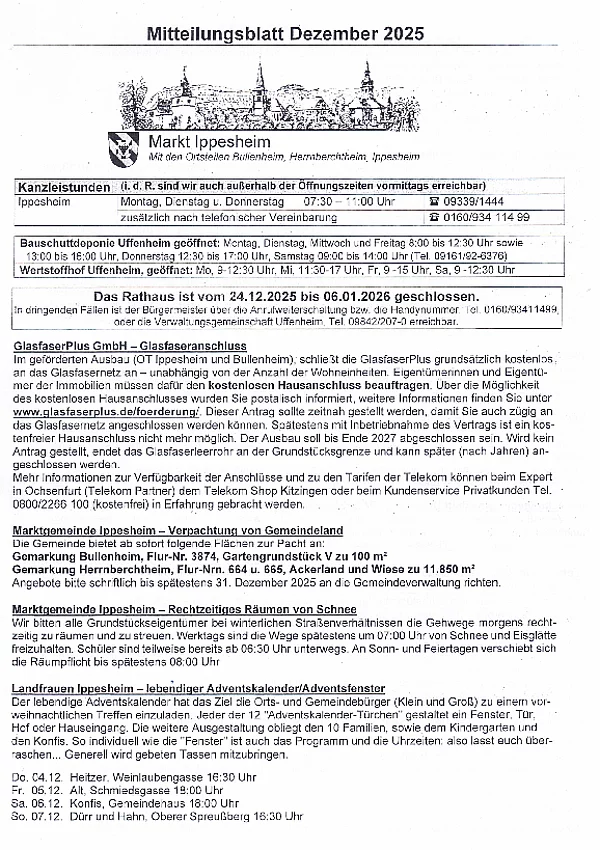 Hier finden Sie unser Mitteilungsblatt, in dem wir über Neuigkeiten in unserem Markt berichten.