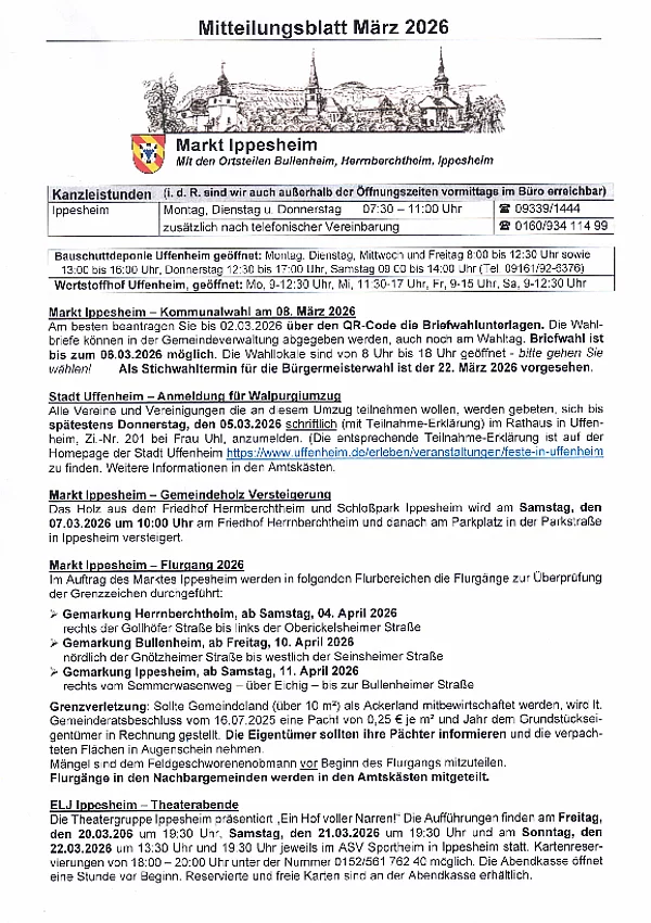 Hier finden Sie unser Mitteilungsblatt, in dem wir über Neuigkeiten in unserem Markt berichten.